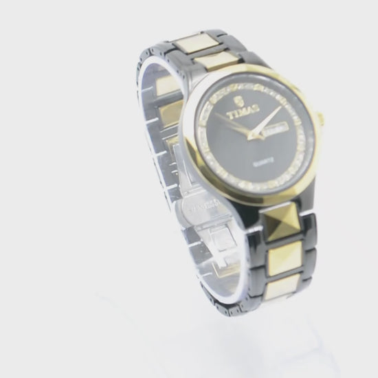 This timepiece is a bold statement of uncompromising luxury and style for men. The Timas All-Gold Watch commands attention with its polished finish, crystal-studded bezel, and rich black dial featuring a functional Day/Date display. Built for lasting quality, it includes a durable Chain Bracelet, a Scratch-Proof Sapphire Crystal, and a reliable Japan Quartz Movement.